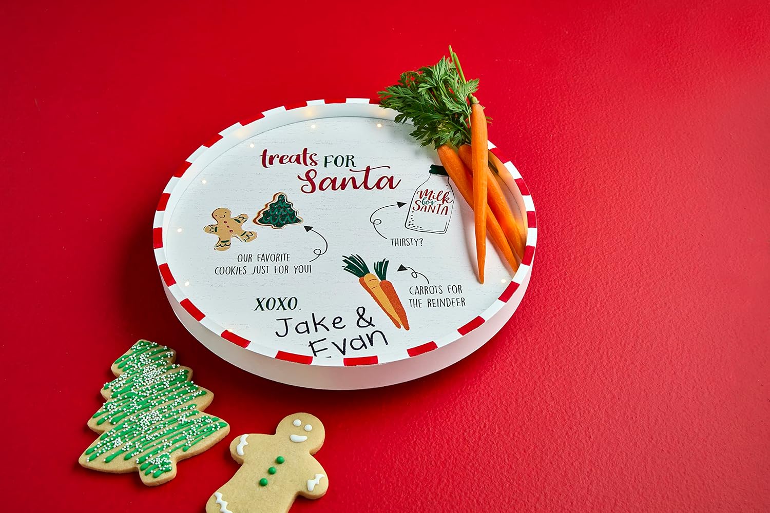 Display your favorite treats for Santa with our Light Up Christmas Cookie Plate. The plate is made from pine wood. The wooden plate has an LED light-up rim. This plate requires two AAA batteries. Batteries are not included. This plate is intended for children ages three and older. This plate should be spot cleaned as needed. Battery pack is located on the back. Don't forget to add your favorite treats for Santa.