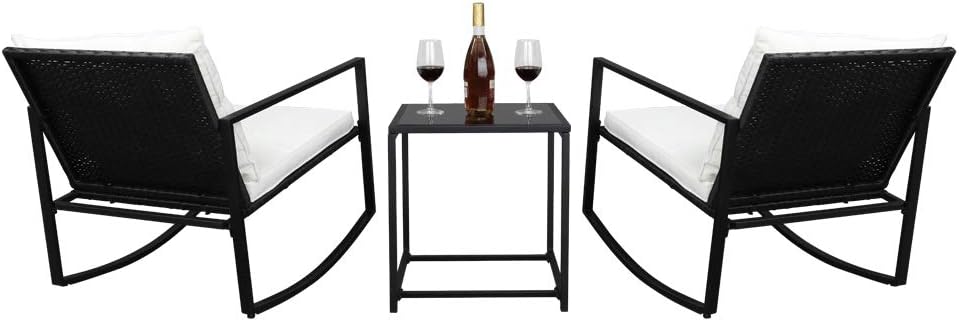 Introductions: This Single 2pcs Coffee Table 1pc Exposed Rocking Chair Three-Piece Set is a best choice for you. It's made of PE rattan and designed for the outdoors. It's of great furniture to decorate your garden. The classic yet simple design made it look great in any setting. This chair is a beat useful furniture for you. It has two comfortable rocking chairs you can sit on it to enjoy your leisure time. The space saving design makes your garden delicate. You will like it so what are you still waiting for? Specifications: 1. Material: PE Rattan Iron Polyester Cloth Sponge Tempered Glass 2. Color: Black Four-Wire Rattan Beige White Mat (Subject To Signature Color Card) 3. Overall Size: (24.8 x 33.46 x 26.77)" / (63 x 85 x 68)cm(L x W x H) 4. Seat Size: 56.5*59.5*28cm(Rear)/40cm(Front) 5. Hand Rest Height: 61cm(Front)/52cm(Rear) 6. Hand Rest Length: 68cm 7. Tea Table: (17.72 x 17.72 x 18.9)" / (45 x 45 x 48)cm(L x W x H) 8. Glass Size: (16.22 x 16.22 x 0.2)" / (41.2 x 41.2 x 0.5)cm(L x W x H) 9. Thickness Of Seat Cushion: 5cm 10. Backrest Width: 56.5cm 11. Backrest Height: 45cm 12. Weight: 39.24lbs / 17.8kg Package Includes: 2 x Single Rocking Chair 2 x Matching Seat Cushion 2 x Matching Cushion 1 x Black Screen Printed Tempered Glass 1 x Hardware Assembly Parts 1 x English Instruction Manual