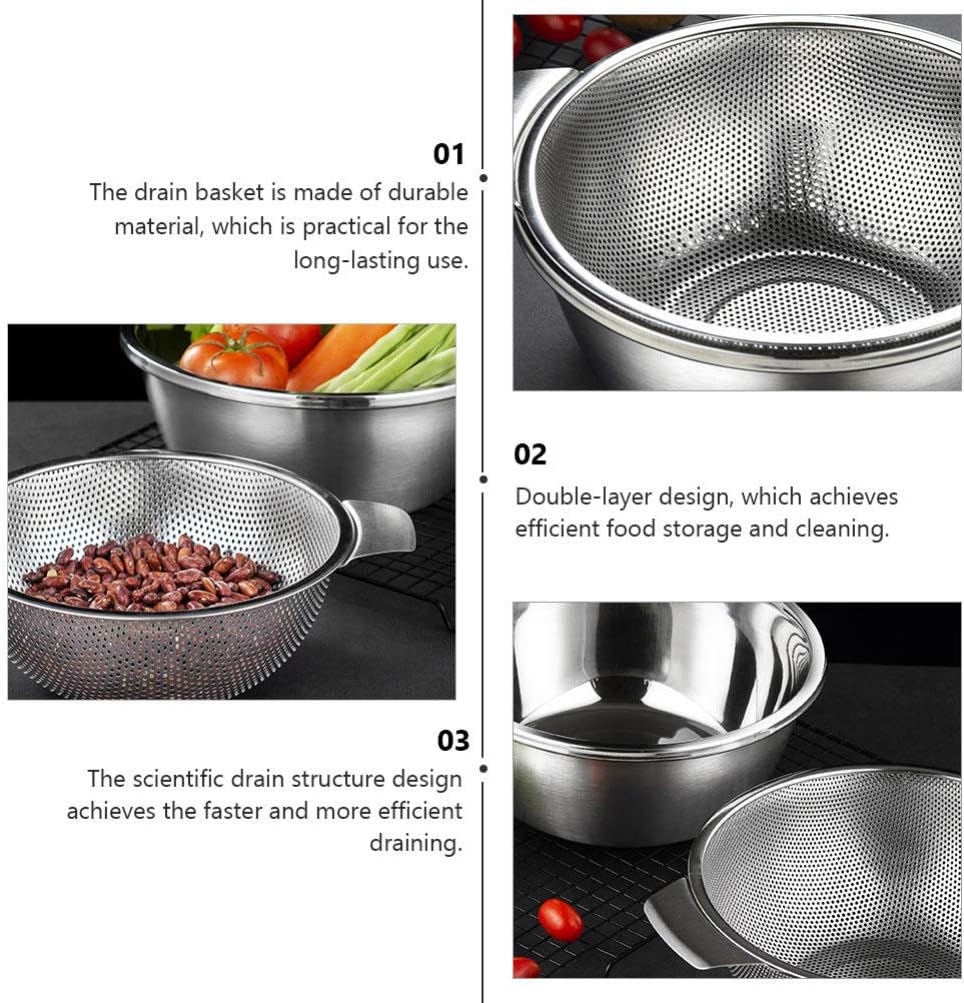 Description Stainless Steel Colander Strainers for Draining Rinsing Washing for Pasta Vegetables Fruits Heavy Duty Kitchen Colanders Basket Features- Material: Stainless steel.- Color: Silver.- Size: 10. 22X10. 22X3. 93inch./ 26. 00X26. 00X10. 00cm/ Package Including 1 x Set of Basket