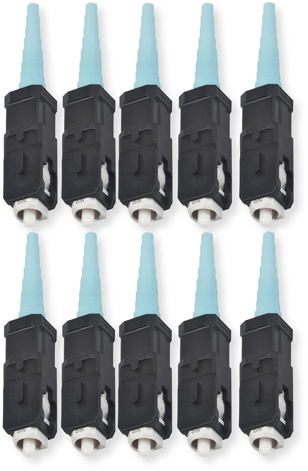Corning 95-050-41-X Pack of 25 UniCam SC Connectors, 50 Micron Multimode, OM3/OM4 Compatible, Field-installable, No-Epoxy No-Polish, High Performance Fiber Optic Connector, Aqua Boot, Black HousingThe Corning 95-050-41-X UniCam SC Connector is a high-performance, field-installable fiber optic connector designed for 50 µm multimode fibers compatible with OM3 and OM4 standards. This connector is perfect for fiber-to-the-workstation and high-speed data applications requiring consistent, high-quality optical connections.Key Features:Pack of 25 field-installable SC connectorsCompatible with 50 µm multimode OM3/OM4 fiberNo epoxy, no polish installation processTypical insertion loss of 0.1 dBMaximum insertion loss of 0.5 dBCeramic ferrule for precise alignmentComposite black housing with aqua bootOperating temperature range -40C to 75CIncludes shroud, crimp band, 900 µm and 3.0 mm bootsPulling force rating of 125 lbsTensile strength of 4.9 N on 900 µm cableSpecifications:Fiber Category: 50 µm MM (OM3/OM4)Technology: No-Epoxy/No-PolishTemperature Range, Operation: -40C to 75C (-40F to 167F)Connector Type: SCHousing Color: BlackBoot Color: AquaFerrule Material: CeramicNominal Fiber Outer Diameter: 125 µmTensile Strength Jacketed Cable: 50 N (11.24 lbf)Tensile Strength 900 µm Cable: 4.9 N (1.1 lb) change Less than or equal to 0.2 dB, FOTP-6Insertion Loss, Max.: 0.5 dBReflectance: Less than or equal to -26 dBPackage Contents: Connector, shroud, crimp band, boot (900 µm), boot (3.0 mm) per pack