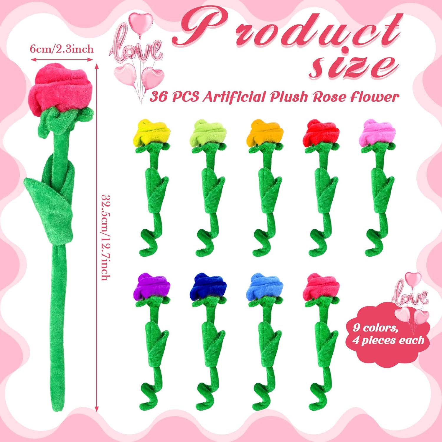 Features: Lightweight and portable: Owing to nice material, our Valentines plush bulk are lightweight and easy to carry. Your son can use it to express love and appreciation to mother, making mother delighted and surprised. Warm gift: These rose toys can be practical gifts for family, relatives, neighbors, mates and more, making them delighted and enjoyable in daily. Specifications: Quantity: 36 pcs Size: about 32 cm/ 12.6 inches Color: red, pink, rose, sapphire blue, purple, green, yellow, blue, orange Material: plush, PP cotton, metal Package includes: 36 x Rose toys Warm notes: Please allow a little error on the size due to manual measurement. The color might have a slight difference due to different displays. Please read the size instruction carefully before purchasing. Suit to people over 12 years old.