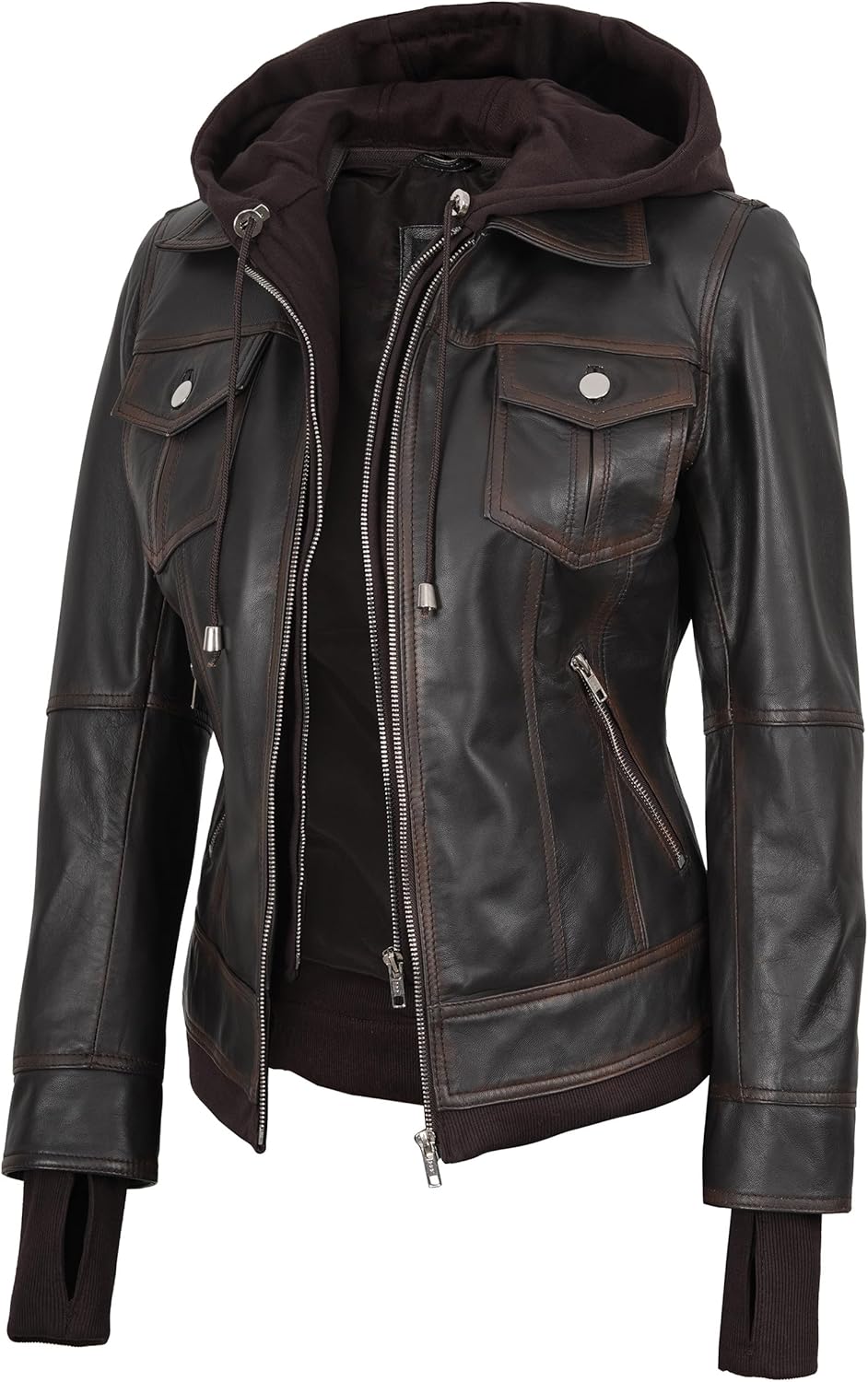 | Color | Betty Hooded Black Leather Jacket |