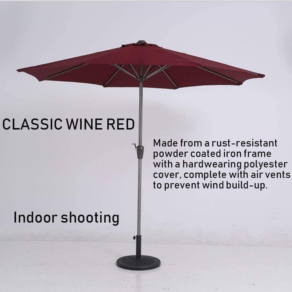 This parasol is an excellent choice for staying cool when it's sunny outside. canopy filters most UV rays, keeping you protected from potential sun damage, as well as helping to reduce sunstroke. A beautiful and rar unique which will pair with your existing garden decor effortlessly.> Overview:> - Umbrella Type: Market umbrella> - Size: 9ft / 270cm > - Canopy Shape: Round> - Pole: iron, Dia.1.50 inch (38 mm)> - Umbrella cloth: UV resistant polyester fabric,Waterproof> - Open method: Manual> - Air vent: Yes. It provides basic wind and heat venting> - Commercial/Residential: Both> > Tips:> *Please close umbrella when you do not use in bad wear so umbrella will have a longer performance. > > How to clean :> -Brush off loose dirt.> -Spray on a cleaning solution of water and mild soap.> -Use a soft bristle brush to clean.> -Allow cleaning solution to soak into fabric.> -Rinse thoroughly until all soap residue is removed.> -Air dry.> > Package Includes: > 1x Outdoor umbrellas{/p}