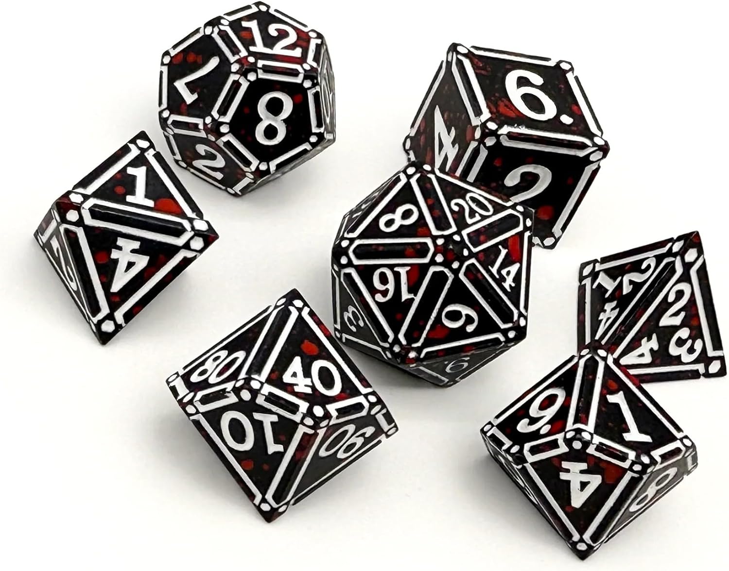 Start on a journey through realms unknown with our exquisite 7-Piece Metal Dice Set, meticulously crafted to raise your gaming experience to new heights. Crafted from solid metal alloy, these dice are not just tools of chance but companions through the labyrinth of your imagination. Within this set, you'll find everything needed for your next adventure: a d20 dice for pivotal moments of fate, a d12 for critical strikes, dual d10 dice for percentage rolls, a d8 for weapon damage, a d6 for spellcasting, and a d4 for minor wounds or treasure division. Whether you're delving into the depths of dungeons or soaring through the skies on fantastical quests, these dice stand ready to aid you in your endeavors. Each piece boasts intricate designs, reflecting the essence of ancient artifacts discovered in long-forgotten tombs. The numbers, etched with precision, are easy to read, ensuring swift resolution of your character's fate. With a variety of plating and enamel color combinations, these metal dice not only provide clarity but also add a touch of elegance to your gaming table. Whether you're a seasoned adventurer or a newcomer to the world of tabletop role-playing games, our Metal Dice Set is sure to impress. Compatible with any games, these dice are the essential companions for any journey into the unknown. So gather your party, ready your characters, and let the dice roll. With our Metal Dice Set by your side, every twist and turn of your adventure will be met with anticipation and excitement, ensuring that your gaming experience is nothing short of legendary.