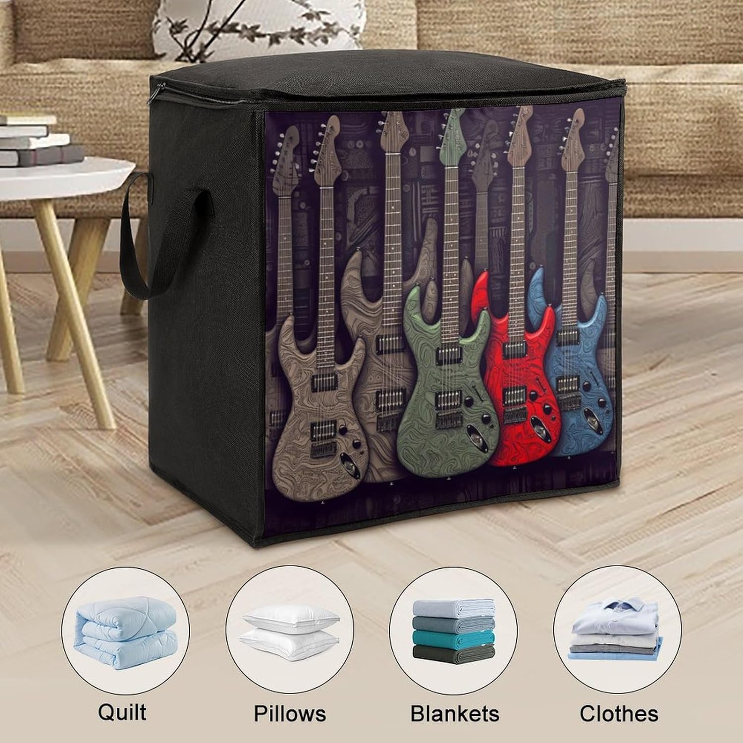 The Guitar Pattern printed Large quilt storage bag fit easily into closets or shelves, and are powerful enough to hold your daily items, protecting your stored items from moisture, dust and damage, keeping them fresh and clean Bedroom storage bags can also be used to store seasonal and Christmas decorations, making them a suitable Christmas gift for family and friends