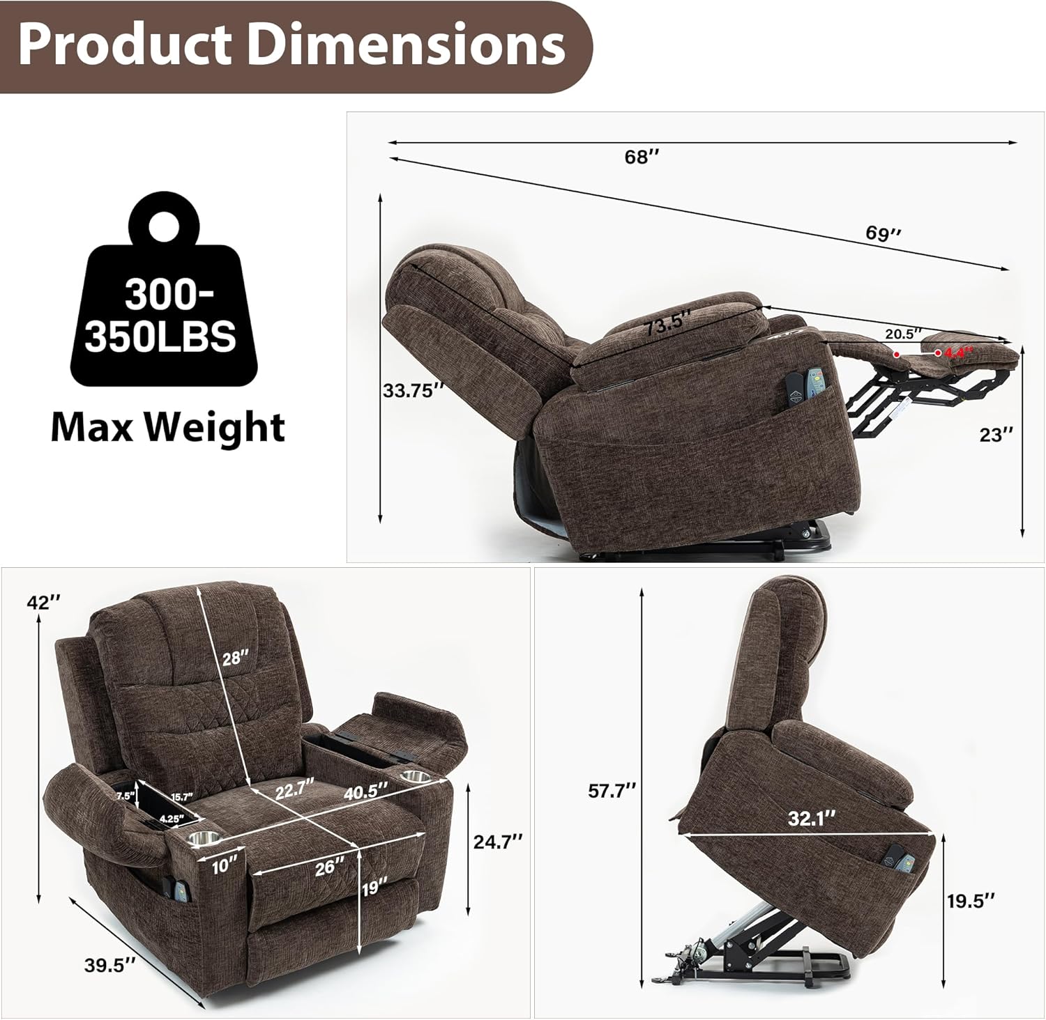 | Additional Features | Back Support, Cup Holders, Ergonomic, Heavy Duty, Power Lift |