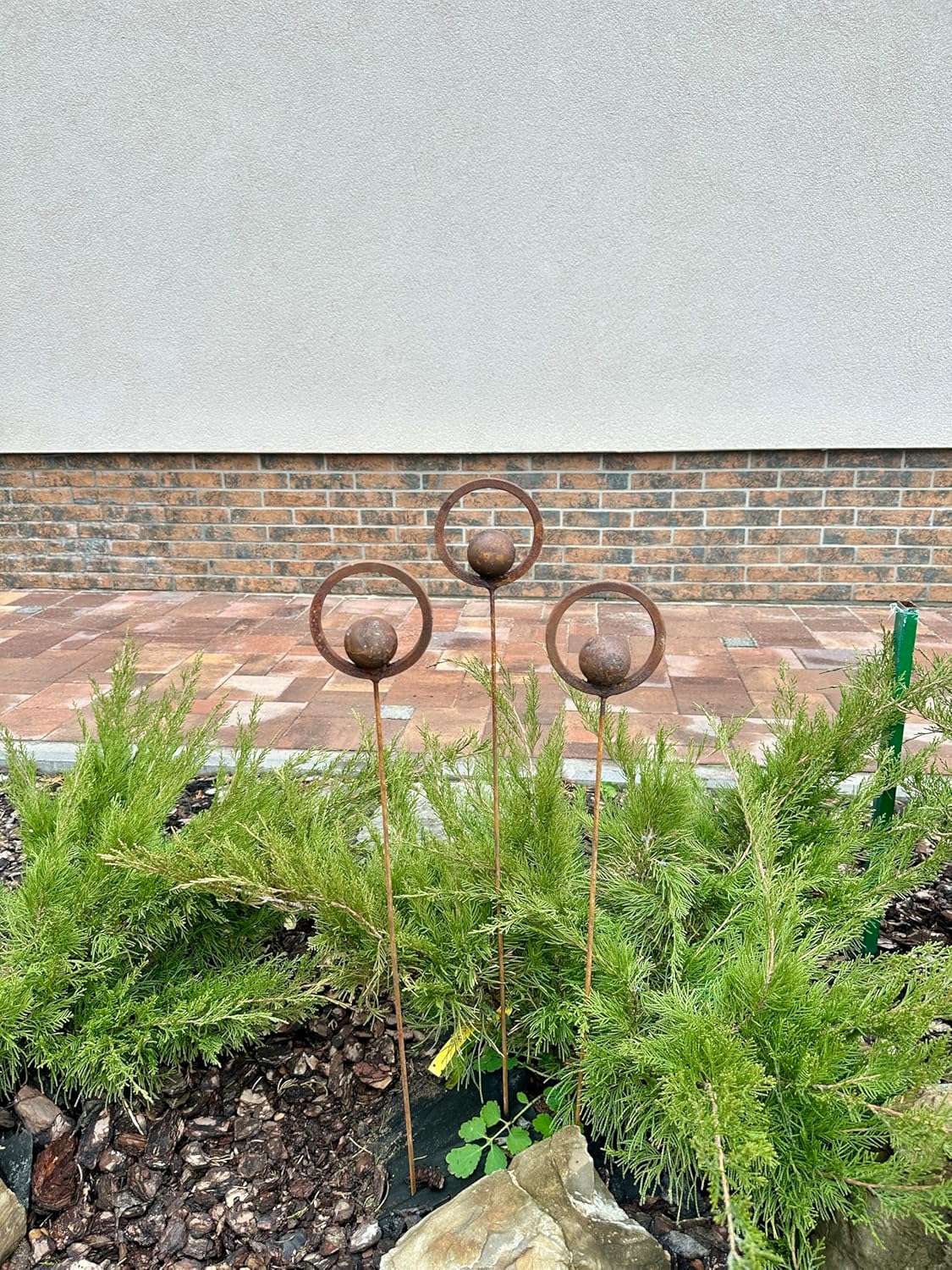 This Rustic metal garden finials set of 3 will place decorative accent in the garden compositions and landscape, create an atmosphere of romance and coziness in your home. This rusty metal art could be used as decoration at your home, in your garden, backyard, terrace or entrance to your home. This yard decor made from natural metal and it covered with a natural rust. This rusty garden decor can be used all year round, it is not afraid of precipitation, direct sunlight, etc.