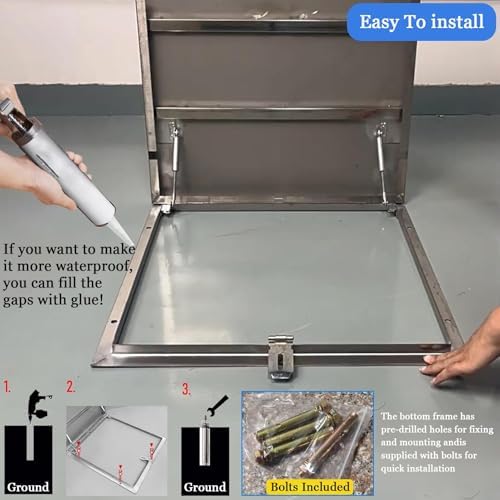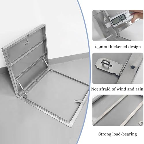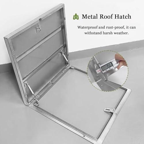 Introducing our Heavy-Duty Skylight Hatch Door, engineered for durability and designed to enhance accessibility to your flat roof. This versatile roof access hatch is ideal for various applications, including attic access, basement entries, and emergency exits, ensuring safety and functionality in all weather conditions. Constructed from premium 304 stainless steel, our roof hatch offers robust protection against the elements while maintaining a sleek appearance. The innovative sealing rubber strip effectively prevents rainwater from seeping through the gap, ensuring your interior spaces remain dry and secure. The hatch has a convenient 90° opening angle, allowing for easy access and maneuverability. Designed for embedded installation, our skylight roof hatch can be customized to your specific dimensions, making it a perfect fit for any project. Please remember to measure the bottom frame's inner diameter size to ensure it meets or exceeds the wellhead opening size for optimal performance. While this roof access door is perfect for internal operation, it’s important to note that it can only be opened from the inside, providing an added layer of security. Package includes: - 1 × Roof Hatch Cover - All Necessary Screws (additional items may need to be purchased separately) Installation Tips: - Wear gloves during installation to prevent scratches. - Please allow for a measurement error of 0 to 1 cm (0 to 3/8"). - Colors may vary slightly due to lighting and screen settings. Upgrade your space with our reliable and stylish Roof Access Hatch Door, the perfect solution for safe and efficient roof access.
