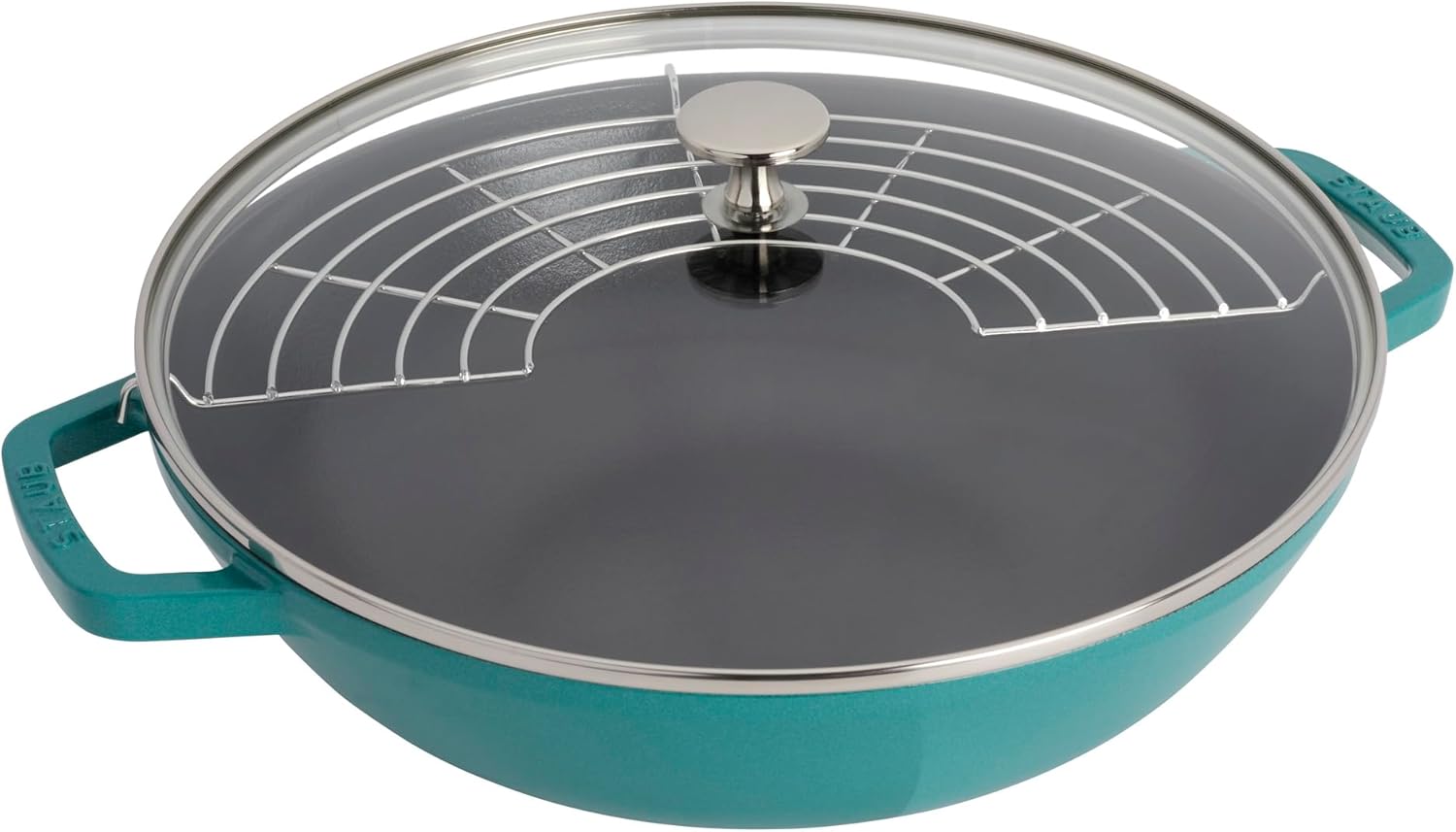The Perfect Pan's name says it all. The ultimate multitasker, it excels at searing, sauteing, browning, steaming, stir frying, and deep frying. Wide, angled sides facilitate stirring without spilling - a plus when stir frying meats and vegetable. Thanks to cast iron construction, the vessel retains heat remarkably well to ensure uniform cooking.